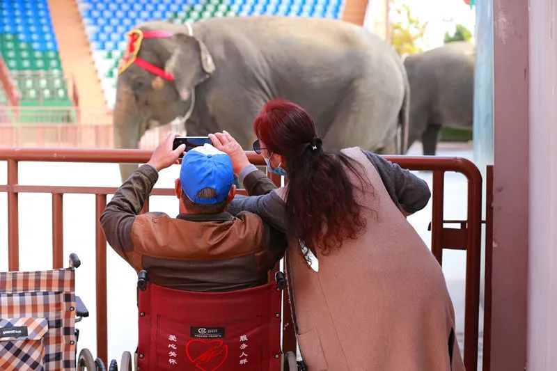工作人员和老人们将准备好的胡萝卜,苹果块扔下车,引来动物们的追逐,无比欢乐。