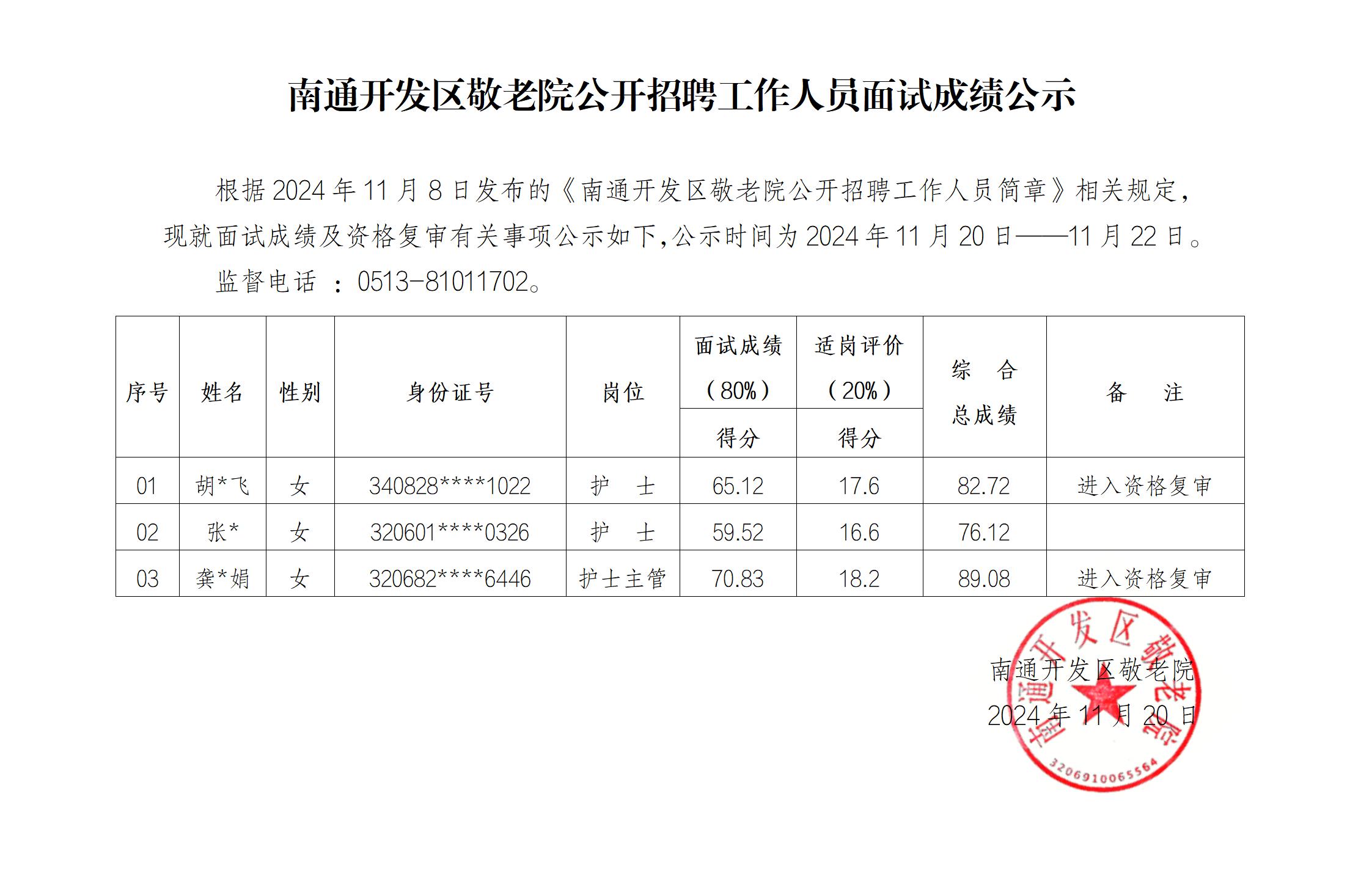 bat365正版唯一官网公开招聘工作人员面试成绩公示
